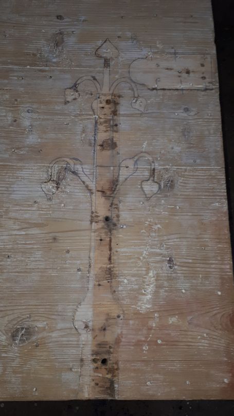 Zuwarten ist manchmal der beste Ratgeber, denn Türen und der Restaurator müssen sich erst finden. So auch die Türen der evangelischen Kirchengemeinde in Idstein- Heftrich. Holzergänzungen, neue Bodendichtungen, umlaufende Dichtungen, Leinölanstrich und Revision der Beschläge verhelfen den Türen zu "neuem" Glanz und der Kirchengemeinde zu warmen Füßen. Ach ja, nach der Farbabnahme die Überraschung: Abdrücke originaler Bänder. Diese neuen Beschläge zieren unter anderem auch die ersetzte Tür der Sakristei.